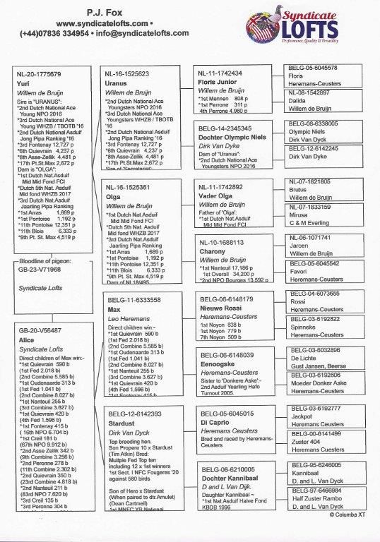 He initially, will be ran with our 7 hens that carry the insatiable winning bloodlines of Willem De Bruijn