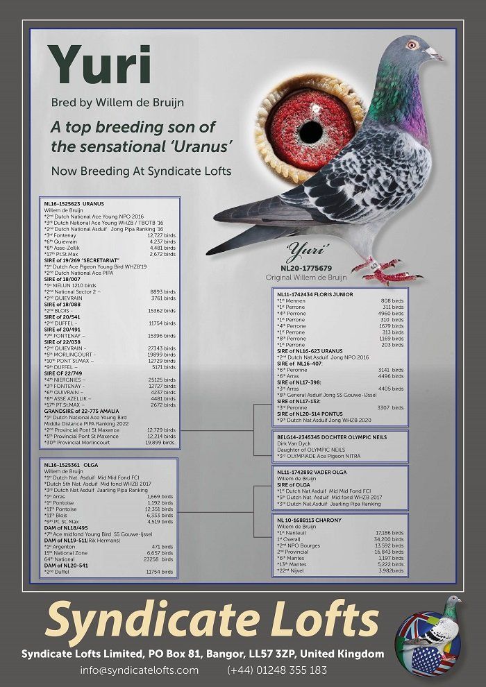 We are thrilled to announce that our 2023 DIRECT SON of the KBDB Superstar "BLIZZARD KING KITTEL" now resides with us at FIBBERSLEY LOFTS. In 2024 he will be mated to all our of principle breeding hens, including a gorgeous 2023 G.Daughter of "BLIZZARD KING KITTEL" and a limited number of YB will be available from him.