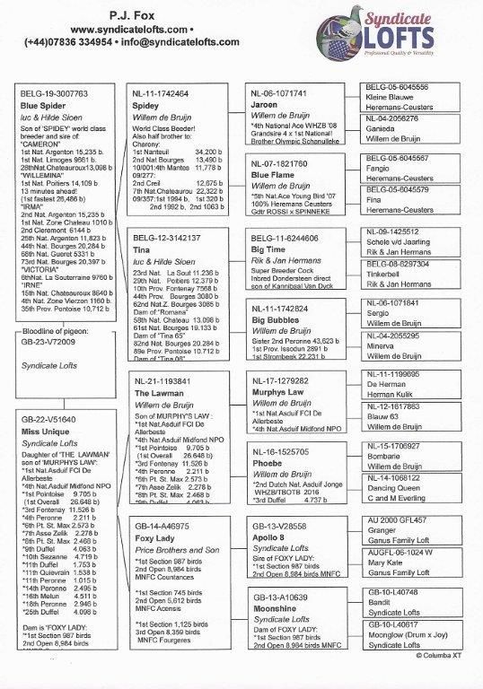 He's breeding winners 1st over 2,000 + birds etc